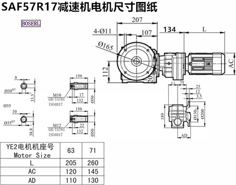 | 伺服電機渦輪渦桿減速機 | SAF59R19YPB71M4 | SAF59R19DRE71M4 | SAF59R19DRL71M4 |
